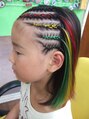 エクステを一緒に編み込んでいます。ラスタカラーです!