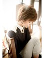 大きめカールの自然なラフパーマをかけることで、ショートヘアでも可愛らしさをアピールできます。カラーは、アッシュベージュの、ナチュラルなカジュアルショートスタイルです。