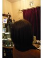 今回はベース2~3センチ程カットし、毛量調整しました。カラーはリタッチのみですが、中間~先を中心にタンパク質&CMC等を補充し、擬似キューティクルを貼り合わせて仕上げています。ホームケアも続けていただいてるので、髪の状態もかなり良いです。