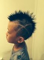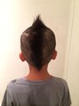 子供らしく、可愛く、でもちょっとハードなモヒカンにしました。更に個性を出すために左サイドのみにラインを2本入れました。