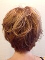 夏のダメージをした髪の毛をバッサリカットしました。トップの方はふんわりパーマをあて、全体的にハイライト、ローライトを入れ、より立体感のあるスタイルにしました。