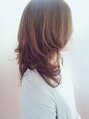 表面だけにレイヤーをいれて、毛先は重めに残したスタイルです。軽さがあるのでまいたりしたときに表面の動きがでやすいです。
