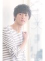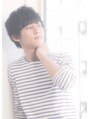 重ためバングのメンズショート。耳は全部出さずに少しかかるくらい。トップのみにニュアンスパーマをかければ、ラフな黒髪スタイルの出来上がり。(ナチュラル、カジュアル、大人ツーブロック、ラフな髪型、黒髪ショート)