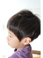サイドとネープを刈り上げてかぶせたスタイル。トップは自然に動くようにカット。