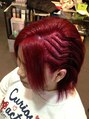 ブリーチ後ワインレッドをONカラーアクセントに片サイドにL字のコーンロウ♪