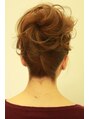 アップスタイルです。エアはアップのお客様もとても多いです。肩に当たる位のボブスタイルをあげてみました。シニオンのカール感と小ぶりな合わせ夜会風の捻りがポイントです。