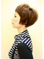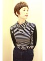 前髪を短く切っていて、左右どちらに流しても雰囲気を変えられます。襟足も短くスッキリと。より頭を丸く見せるために骨格補正をしながらCUTしますので誰でも似合わせられます。カラーは透明感のあるコバルトアッシュです。