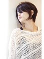 顔まわりに長さを残した軽さのあるショートスタイルです。ルミエールカラー ウェービーボブ フェミニンロング ほつれウェーブ かきあげバング オフィススタイル ヌーディ―カラー ひし形フォルム 耳かけボブ フレンチガーリー 黒髪 大人かわいい ボブ 結婚式