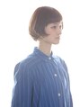 左右の長さ、前髪の長さもアシメトリーにした重めバング前下がりベースの個性的なコットンボブヘア。大胆にバランスを変えることで骨格補正を可能に。ノーブルカラーでツヤ感もアップさせて大人可愛いに!黒髪も◎