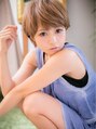 透明感のあるハイトーンカラーと,パサっとしない質感カットが決め手です。サイドの毛を耳にかけるとスッキリ涼しげに。初めてのショートでもハマるかも!マッシュ,ポップショート,カジュアルショート,斜めバングで小顔効果もバッチリ♪簡単スタイリング!