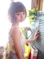 顔まわりのクシュとしたカールがキュートなボブ。前下がりのカットベースで顔周りに長さを残し、ヌケ感のあるフンワリパーマで女性らしい印象に。厚めの前髪は少し短めにカットし可愛らしさをプラスします。ワックスをもみ込むだけの簡単スタイリング。