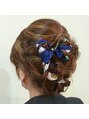 サイドからうしろにかけて編み込みをしていき、途中でスカーフを入れ込みまとめたスタイルです♪