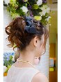 顔周りや、うなじにかけてスッキリと編み込みする事で全体的にコンパクトなヘアセットになります!