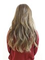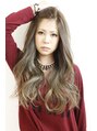重ためのAラインのスタイル。内側に明るめのカラーを無造作に入れ、グラデーション風に見せています。ゆるめのカールが、セクシーでグラマラスな雰囲気に!カラーは、ハイトーンのアッシュです!