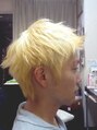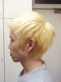 2回ブリーチ後、カラーを乗せて透明感ある金髪に。金髪でも品がでるようにショートのアップバングに♪