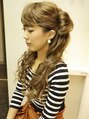 ナチュラルなカールのハーフアップにインパクトのある大きめのリボンでポイントをつけて可愛らしいスタイルに・・・
