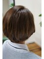 襟足はスッキリと、マッシュボブでかわいらしさを。カラーはベージュブラウンをベースにハイライトをプラスすることで凹凸と動きを出します。