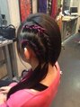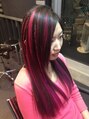 黒ベースの地毛にピンクのエクステメッシュをつけました♪片サイドはエクステ混ぜの編みこみです!!