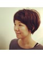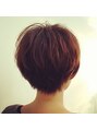 くせ毛を生かしたショートスタイルです。アウトラインは短めですが、トップを長めに残すことで女性らしさを出しました。