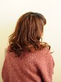 カラー+カット+パーマ。巻いた時にカールを長持ちさせる為、毛先に傷みにくいシス系のパーマを施しています