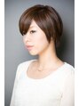 クールフェミニンなふんわりナチュラルショートスタイル。似合わせ小顔カットで重めな斜めバングが◎ 耳かけアレンジでよりすっきり感もUP♪