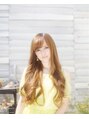 ローレイヤーロングがベース。全体にスライドカットで束感をだして。前髪は目ラインで流れるようにカット。カラーはハニーベージュでとろけるような柔らかさを演出。女の子の可愛さを最大限に引き出してくれると思います