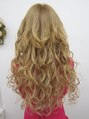 自分でブリーチをされていたので一回のカラーで。金髪からミルクティーにカラーチェンジ♪(ベースの色が暗い場合は一度ブリーチをしてからになります。+¥3000)エクステローザ50本。ベースが短いのでサイドは短めになじむように付けて(^∇^)♪可愛く巻き巻き