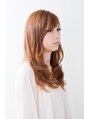 ロングレイヤースタイル。顔まわりにレイヤーと毛先のスライドカットで重くなりすぎないようにしています。さらに、ゆるめのカールで動きを出しています。カラーは髪が柔らかく見えるような13レベルのナチュラルベージュです。