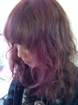 グラデーションカラーを顔周りに入れ、まばらにハイトーンを増やしていく、癖毛もやわらかく見えるようにカット光りや角度、その日の動きによって変化します