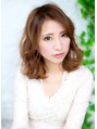 これから流行間違い無しの大人可愛いルーズカールスタイル!透ける様なノーブルカラーのAVEDAカラーに柔らかな上品パーマでモテ度UP!!前髪は流しバングを毛先だけ動きを出し柔らかさを出し小顔にします☆指名無料。人気のふわミディです! 耳かけ