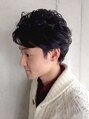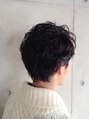 トップは重さを残しバックは刈り上げない程度に短くカットしました。ロッドとピンを使用してランダムなパーマスタイルを作りました
