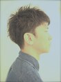 今回のモデルさんは、仕事上清潔感が必要なので耳まわりと襟足はスッキリとし、さりげない2ブロックと前髪に少し遊びを作っています。輪郭が細いので2ブロックの幅を狭くし、バックのウエイトを下げて全体的に丸みを残しました。