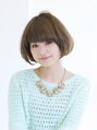 重めバングの大人かわいいコットンショートボブ!似合わせカットで小顔に。ノーブルカラーで美髪効果と透明感アップ!柔らかさの出るカットでハイトーンから黒髪まで幅広く似合います。耳掛けもOK!スタイリングも簡単な万能ボブです。
