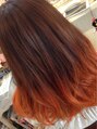 毛先にオレンジカラーをonしたグラデーションカラー!