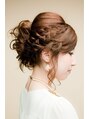 パーティーや二次会にもぴったりのセットです!顔まわりのカールと斜めバングで女の子らしさもアップし、小顔効果もあります☆今人気の編みこみもはいってます。肩より長い方でしたら誰でもできますよ☆