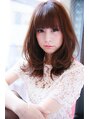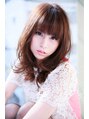 重めバングとダメージレスのヌーディピンクカラーがポイントのバルーンレイヤーカールスタイル