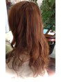 アクティブな方なので、結んでもカッコイイ様なウェーブにしました。カラーはアッシュ系をベースにレイヤー部分から自然に覗くように内側にハイライトを入れてあります。