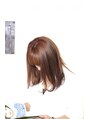 はねやすいミディアムの長さは内に入りやすいようにカット。つや感の出やすいピンクヴァイオレッドのカラーで、女子力をさらに引き出せるようにしてみました。