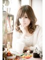 柔らかいフレンチカールのガーリーなスタイルです。春らしい透け感のあるカラーを入れる事でヌーディーさをプラス!!前髪をかきあげる仕草もかわいい。