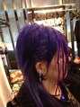 ブリーチ後、青をのせて。コーンロウとブレーズ(紫)を前髪につけました☆