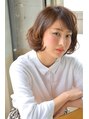 くせ毛風なふんわりした無造作カールがポイントのスタイルです。厚めバングで大人かわいいドーリーヘア♪耳かけボブで綺麗なひし形フォルムに。