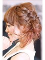 サイドからツイストしてまとめたスタイル♪毛先をまとめてしまわずルーズに散らす事でフェミニンな印象に☆