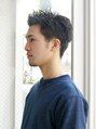 前髪とトップを大胆に立たせ、額を出して男らしさと、爽やかさを両立した好感度ショートスタイルです!ビジネスでも少し大人な雰囲気に☆