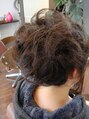 サイドに緩めの編み込みを入れ、後ろは、大き目のカールを散らし、前からも見えるようにしました。