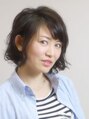 黒髪の耳かけボブ。ランダムにルーズ感のあるパーマをかけて軽やかさを☆子供っぽくならない様、前髪は7:3で流します。重軽スタイル&黒髪でも似合うナチュラルボブパーマ