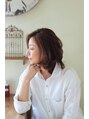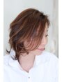 太さの違うハイライトを入れて、上からアッシュベージュをのせています。光の加減、スタイリングの仕方で表情が変化
