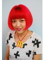 めいちゃんです。今回は、ブリーチリタッチしてレッドパッションで染めました。分かりにくいですけどフロントはヴァンパイアレッドです。マックのネックレスになじんで超いいかんじです。