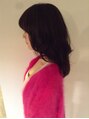 地毛に近いレベルまでトーンを落としたダークトーンカラーとラウンドした前髪で作る、ちょっとロックテイストのあるスタイルです。