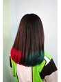 ピンク、グリーンのツートンです。これって色があったわけじゃないんですけど、移りにくく発色のいい色を考えた結果この二色になりました。赤と緑は目立つし一回ブリーチでも入りやすいのでかなりおすすめです。