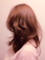 重ためのミディアムベースに表面だけレイヤーをいれて毛先のデジタルパーマで軽さをだした夏一押しのフェミニンスタイルです。